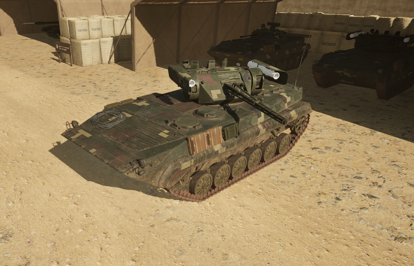 The BMP-1TS is a modernized infantry fighting vehicle built from the classic BMP-1 chassis, upgraded for improved battlefield relevance. In-game it functions as a fast, amphibious IFV that carries a complement of dismounts into the fight while laying down direct fire support from its turret-mounted cannon and anti-armor launcher.